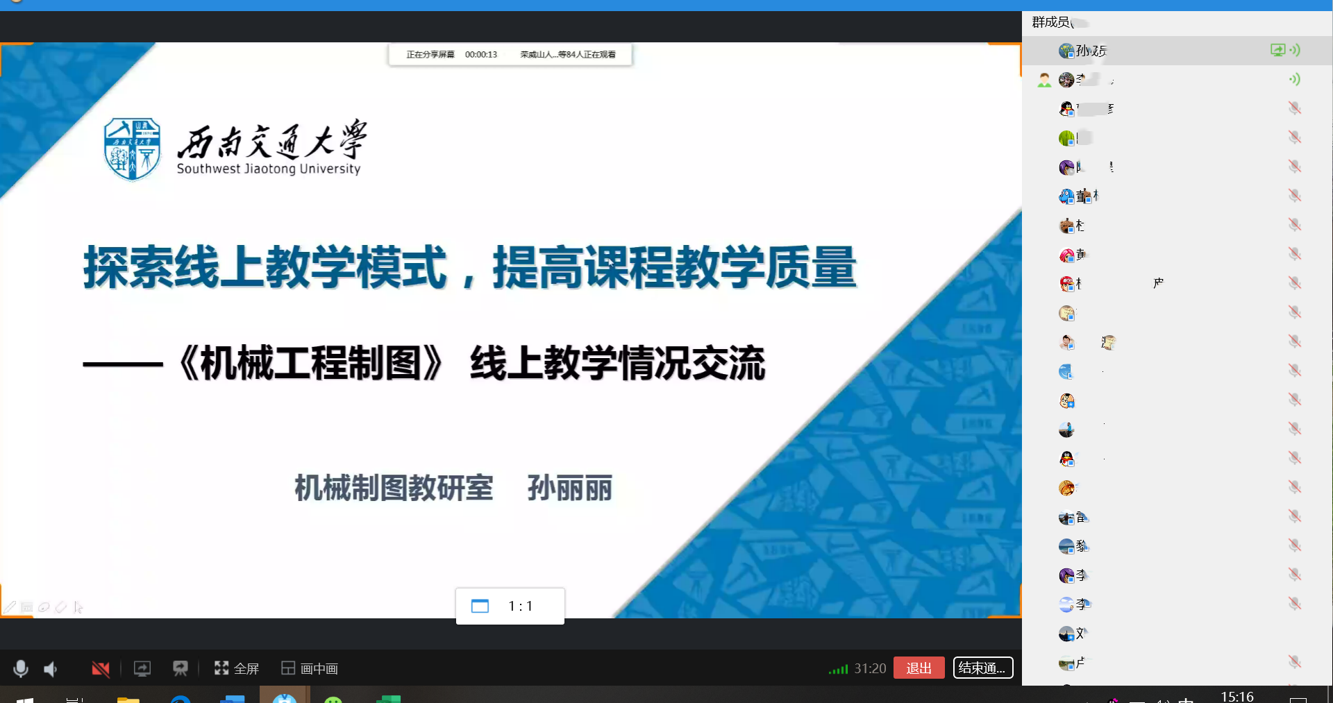 本次研讨会邀请交通设备与控制工程系教师吴磊和制图教研室教师孙丽丽为老师们进行线上教学经验分享。
