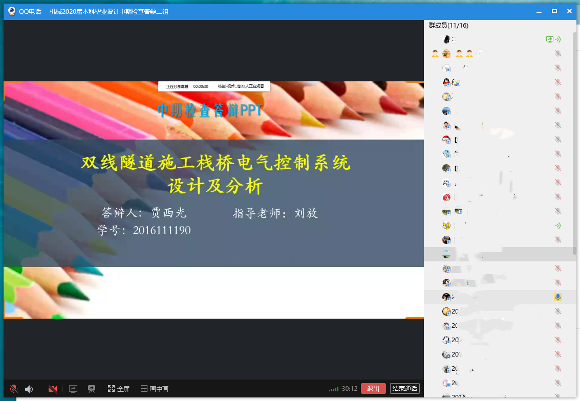 2020年4月12日下午2点,304永利集团官网入口2020届本科生毕业设计(论文)中期检查校级抽查答辩工作如约在线上举行。本次线上答辩共计56名同学分成4组,使用QQ群网络直播方式同时开展,质保委主任程文明、副主任杨美传、副主任冯鉴、机电测控系教授陈春俊分别担任4个答辩组组长,由院党委书记董大伟、副院长田怀文、院质保委员、系所教研室主任及指导教师等60名教师组成的评委参与线上答辩工作,学校高度重视本次校级抽查答辩工作,教务处副处长刘朝晖全程参与学院中期检查校级抽查第2组答辩。