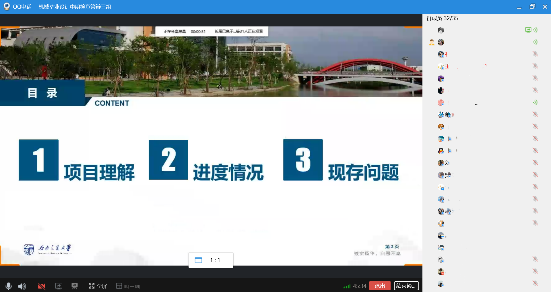 此次中期检查校级抽查答辩中,学生毕业设计(论文)工作量基本比较饱满,绝大部分学生按计划完成工作任务,完成情况较好。首次线上答辩方式的启用,也促使师生进一步思考在无法顺利返校硬件工作无法满足的情况下,如何进行毕业设计(论文)方案调整和优化,保证毕设质量和要求。