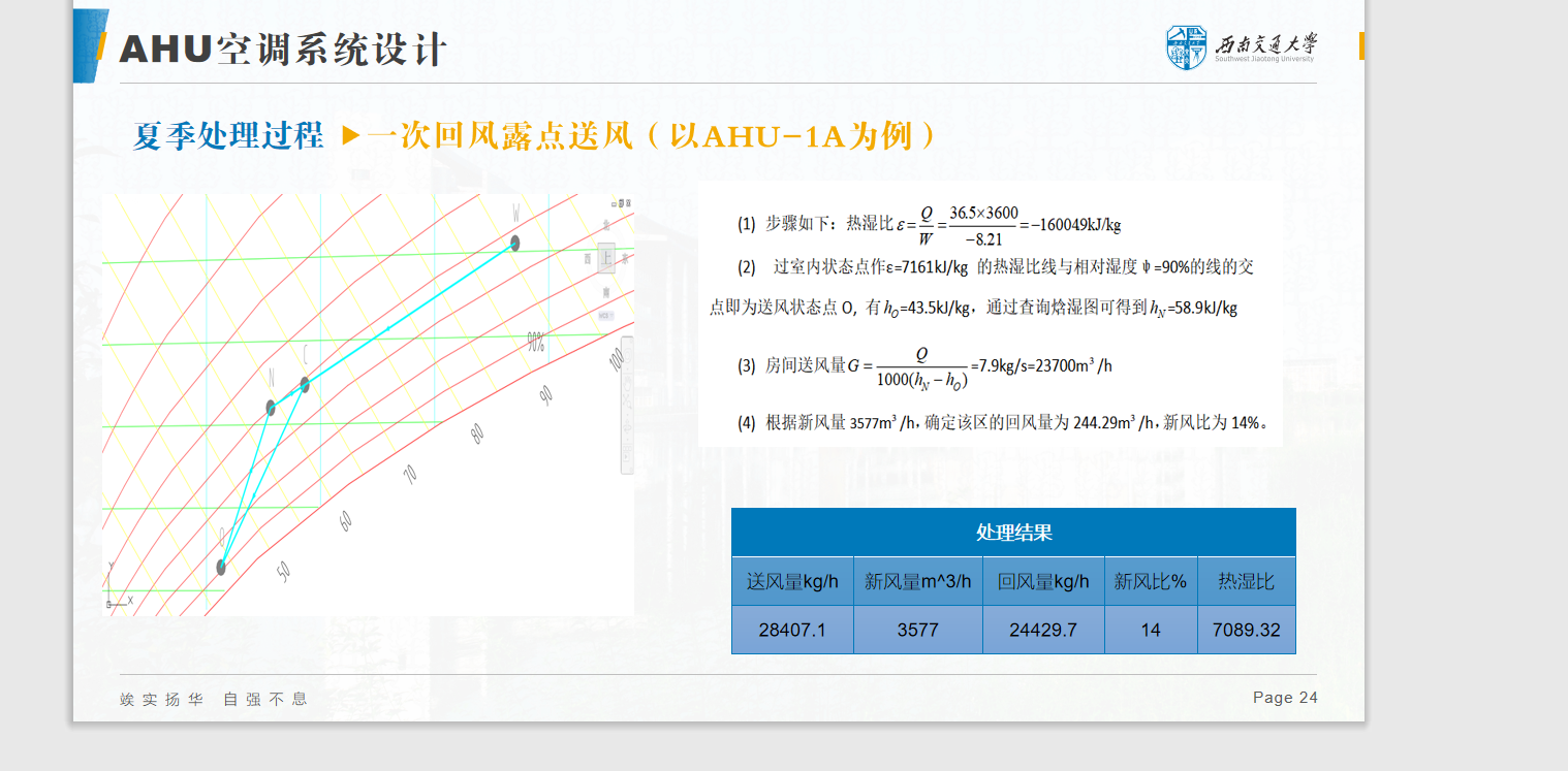 (5)空调系统方案设计:主要包括机组选型、空气处理过程等内容