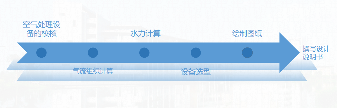 (6)设备选型:对该空调系统所需要的各类设备进行选择,包括末端设备、空调处理设备、冷热源、动力循环设备、调节控制附件等;