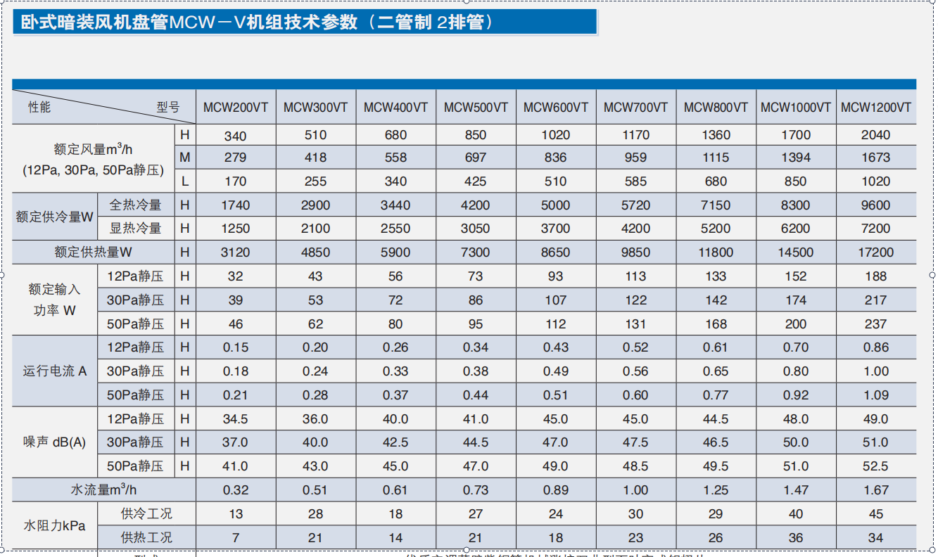 风机盘管机组性能参数