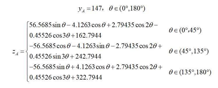 (3)检测机器人的空间运动轨迹数学建模,对于该检测机器人的攀爬爪机构来说,属于机构的正运动学问题,即已知攀爬爪的旋转角度