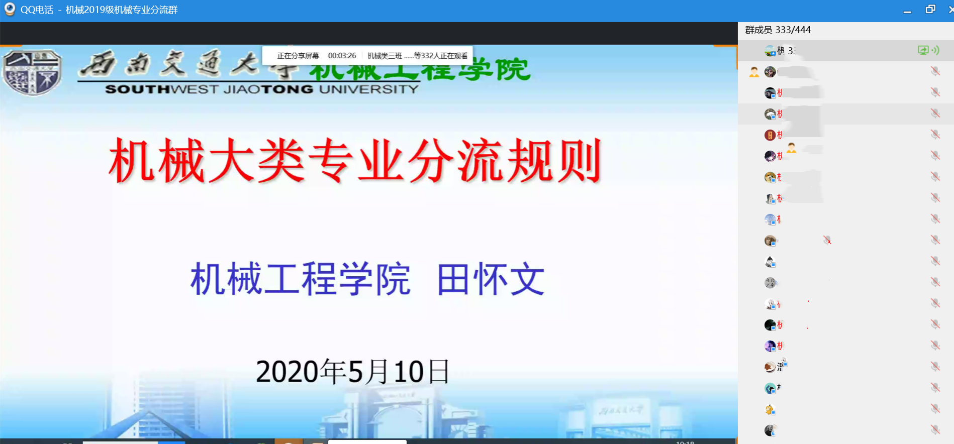 2020年5月10日19:00,304永利集团官网入口2019级机械类专业分流第二次线上交流会在2019级机械专业分流QQ群如期举行。本次交流会由学院李艳梅老师主持,邀请到学院副院长田怀文,副院长、建环系主任袁艳平,机电测控系副主任陈春俊,院教工委主任、工机系王少华、能动系郑东等5为教师为2019级机械类专业同学进行专业介绍。