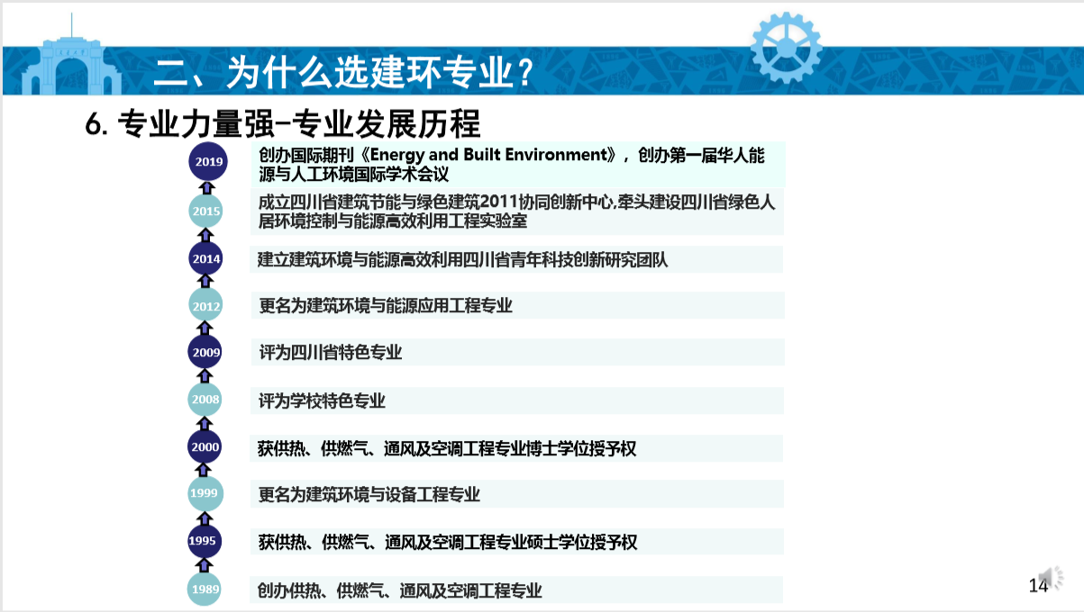 接下来由袁院长为同学们介绍建筑环境与能源运用专业情况。他介绍说,建筑环境与能源运用专业的内涵是采用空调等技术手段构造适合人类生活与工作的舒适、健康、节能、环保的室内环境和满足产品生产与科学实验的室内环境。同时,最大限度地减少能源与资源消耗也是本专业的重点,就业前景广泛。