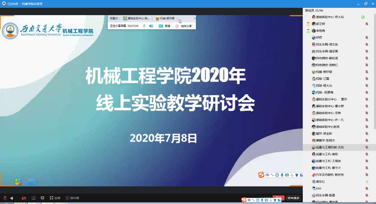 会议由学院分管实验室教学的曾东红副院长主持,学院教工委副主任、机械设计教研室主任罗大兵在线做了题为《疫情下线上实验教学探讨》的直播报告;接着,交控系实验师陶林结合“自动控制原理实验”在线分享了自己在线开展实验教学的经验和体会。